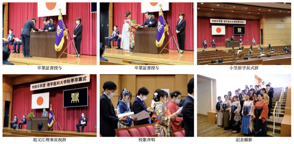 本日9月10日(火)11時より、本学矢巾キャンパス内の大堀記念講堂において、秋季卒業式が挙行されました。今年度より、大学院医学研究科の学位記授与と併せての開催となりました。