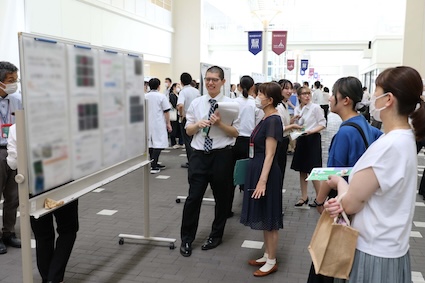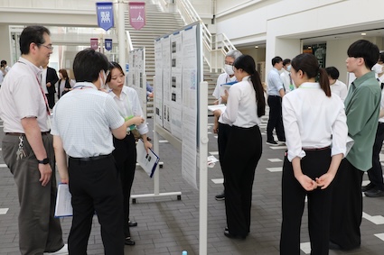 令和7年度薬学部6年生による卒業研究発表会が行われました。4年次の研究室配属から2年半にわたる卒業研究の成果を、各自がポスターを作成し、教員や同級生はもちろん、訪れた先輩後輩や保護者のみなさんにも丁寧に説明をし、質疑応答に励みました。