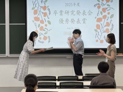 今年度は、教員と学生によって選ばれた優れた発表が表彰されました。学部長賞1名、優秀発表賞2名、学生ピア評価賞4名の計7名が選ばれ、後日表彰式が行われました。