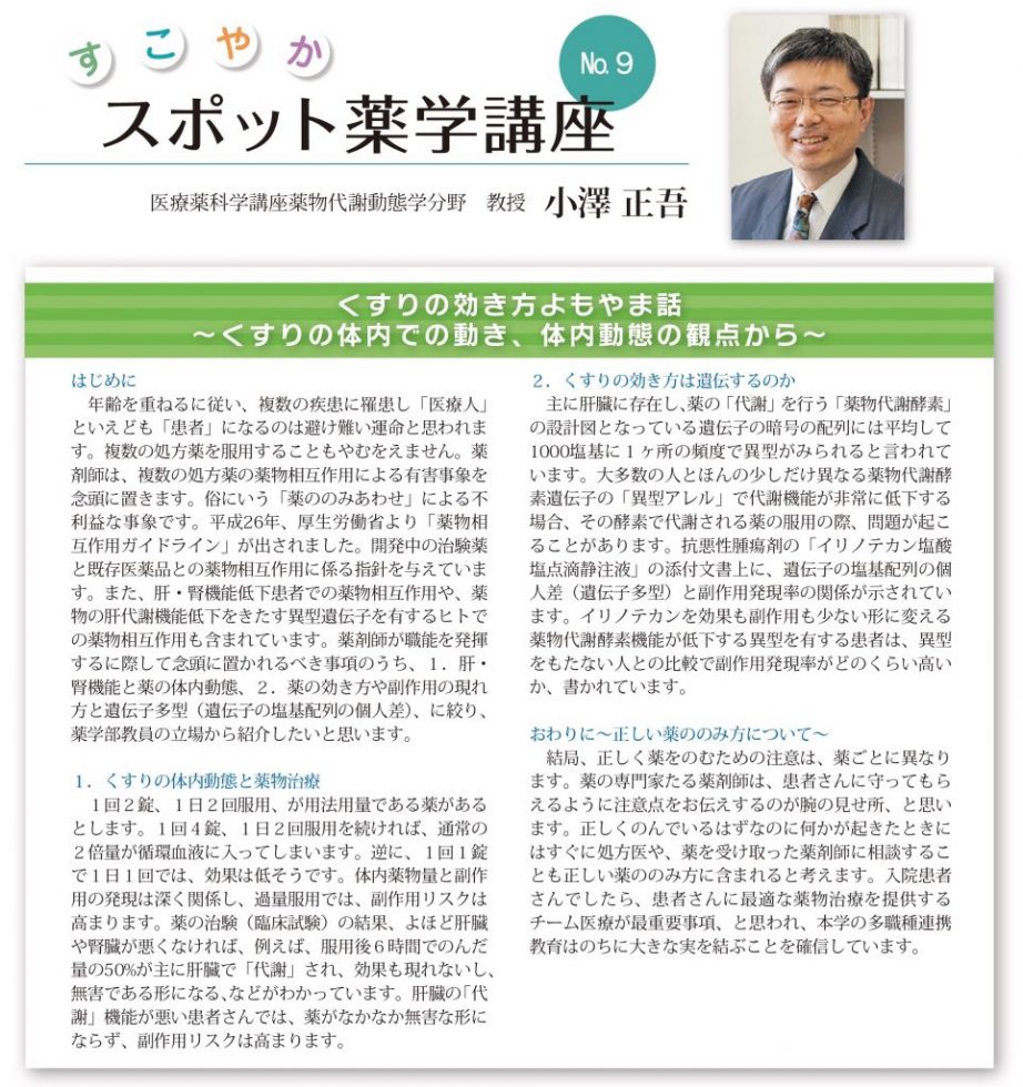 スポット薬学講座 No. 9 医療薬科学講座薬物代謝動態学分野